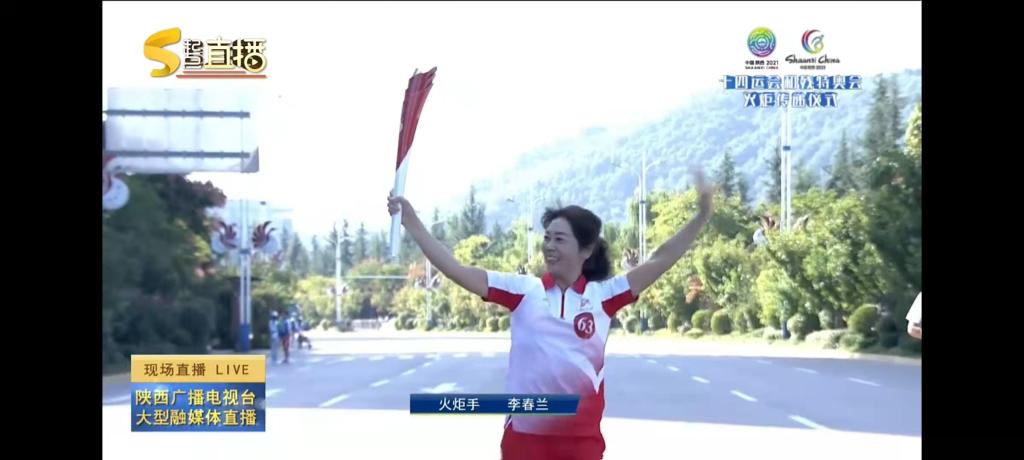 9月10日上午,中华人民共和国第十四届运动会、中华人民共和国第十一届残运会暨第八届特奥会火炬传递第13站在商洛传递。64名来自全省各个领域的火炬手从商洛市市体育运动中心起跑,途径商鞅大道、王塬桥、民主路、州城路、工农路、江滨大道,最终到达望江楼广场,全程4.6公里。我校教师李春兰手持63号火炬,在这个特殊的日子---教师节当天完成火炬传递任务,展现了积极健康的体育风采,唱响了“全民全运 同心同行”的体育乐章。