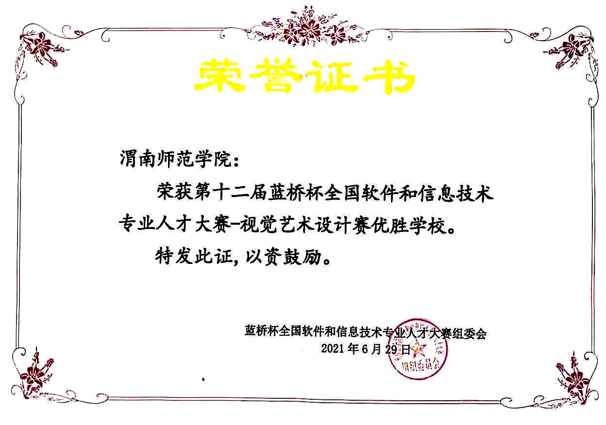 据悉,第十二届蓝桥杯全国高校视觉艺术设计赛由教育部就业指导中心支持,工业和信息化部人才交流中心主办。本届赛事有来自北京大学、清华大学、复旦大学、上海交通大学等1300多所高校的7.5万余名选手同台竞技,我校传媒学院学子在本届赛事中荣获佳绩,是学院注重大学生创业创新能力培养所取得的成果之一。(通讯员 贺宏福 陈栋 审核人 田超)