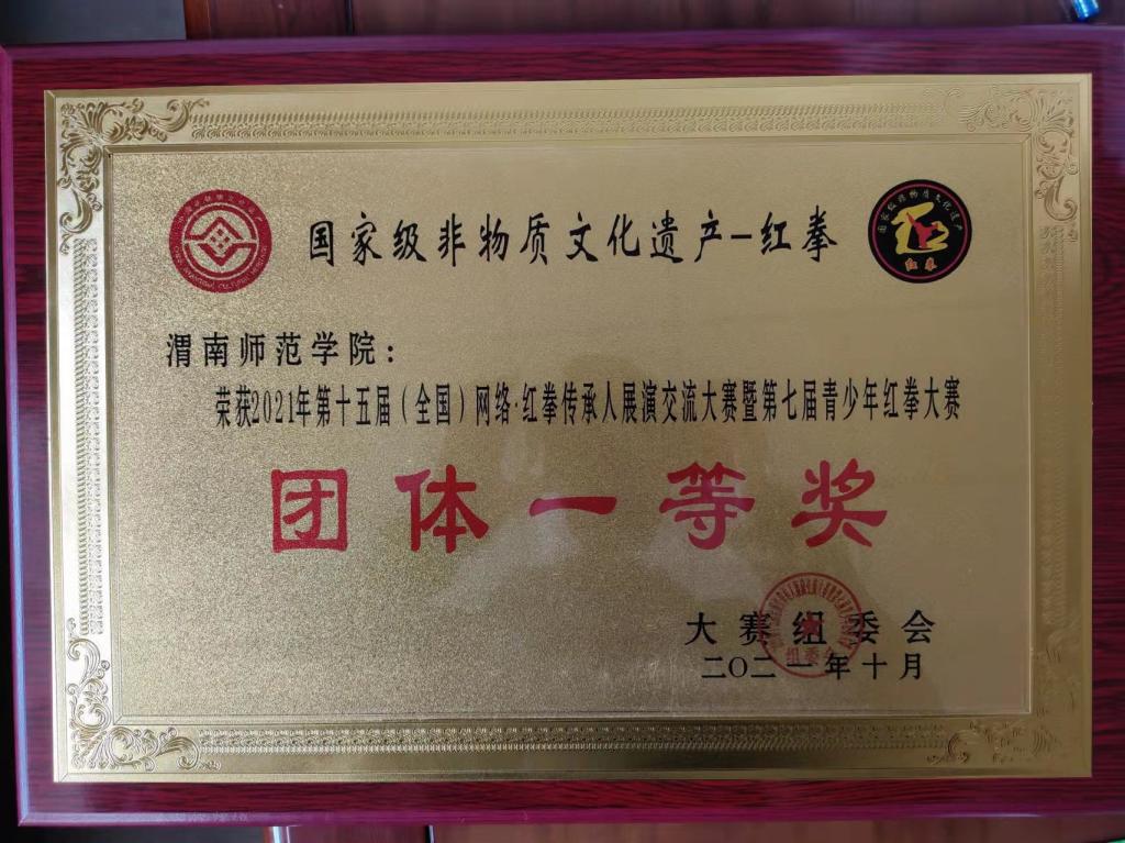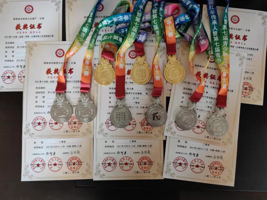“2021年第十五届(全国)网络•红拳传承人展演大赛暨第七届青少年红拳大赛”经过激烈比拼,于11月15日进行颁奖,我校代表队获团体一等奖以及金牌3枚、银牌7枚的优异成绩。