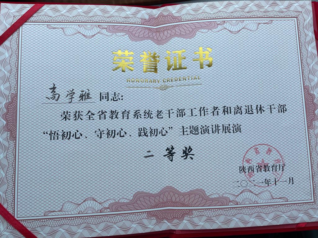 11月30日上午,省教育厅举办“全省教育系统老干部工作者和离退休干部‘悟初心、守初心、践初心’主题演讲”决赛,我校退休教师高学雅演讲的“发挥余热 奉献社会 精彩有我”获得二等奖。