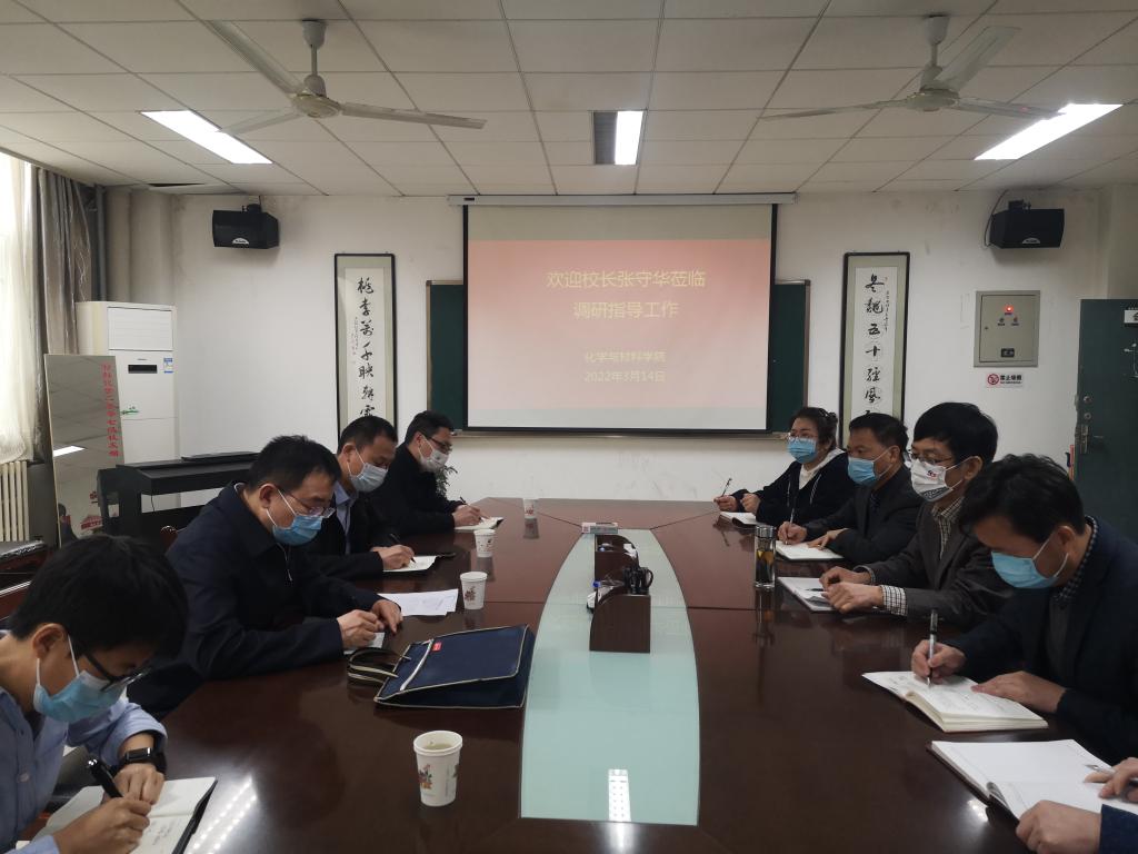3月14日上午,校长张守华深入化学与材料学院调研指导工作,学院全体处科级干部参会。