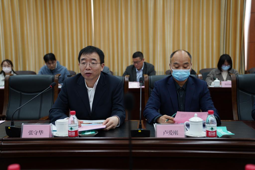 我校科学研究处处长王双喜介绍了学校概况、科研平台与团队建设、科研特色与代表性成果等基本情况。卢爱刚就双方合作基础、合作前景、落实方案等进行了交流与探讨。