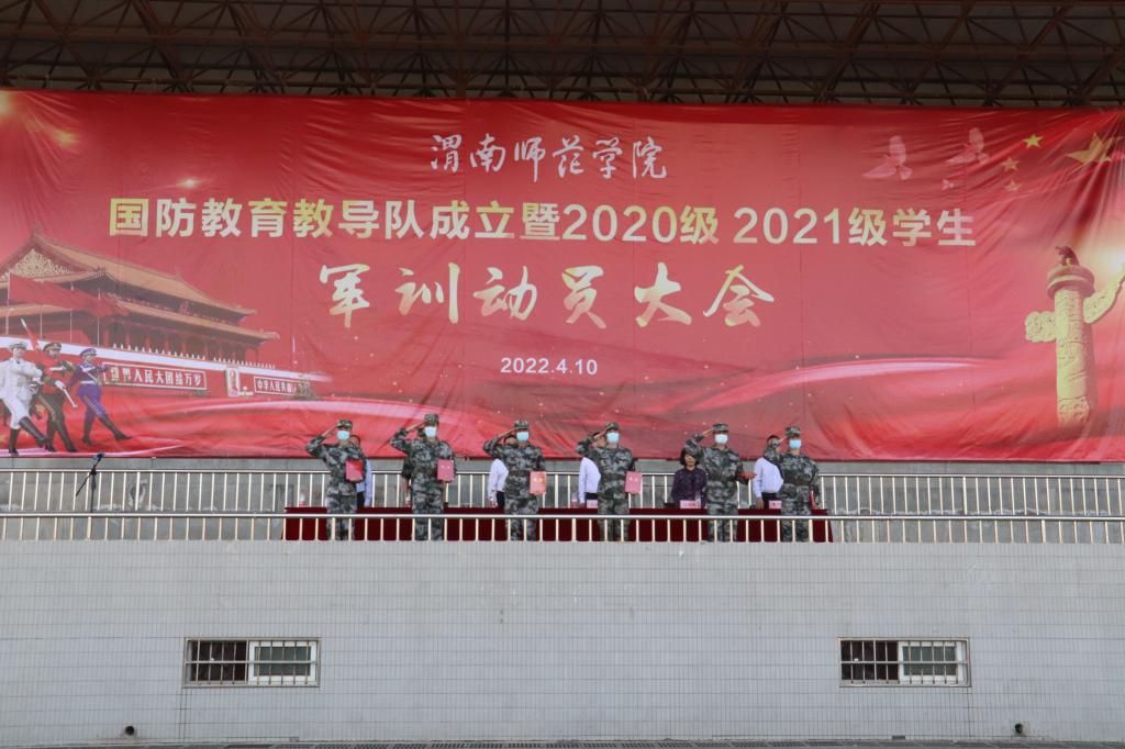 4月10日下午、4月11日上午,学校分别在朝阳校区和富平校区田径运动场,根据疫情防控要求,举行了国防教育教导队成立暨2020级、2021级学生军训动员大会。大会由学校党委副书记汪勇主持。