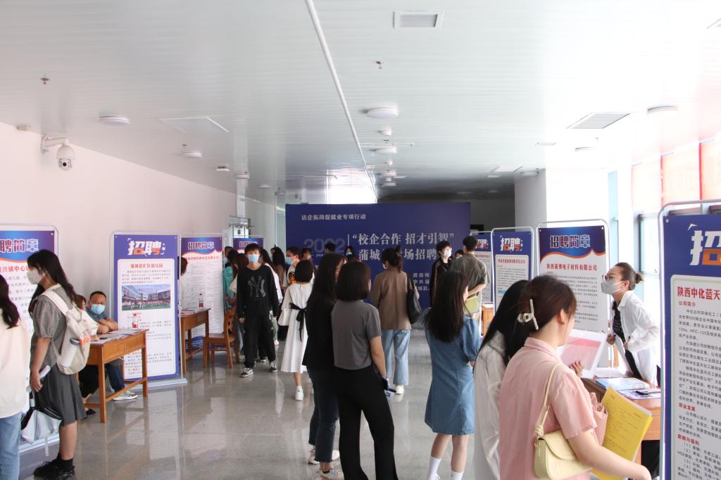 5月18日上午,学校与蒲城县委县政府在云帆体育馆联合举办2022年“校企合作 招才引智”蒲城县专场招聘会启动仪式。