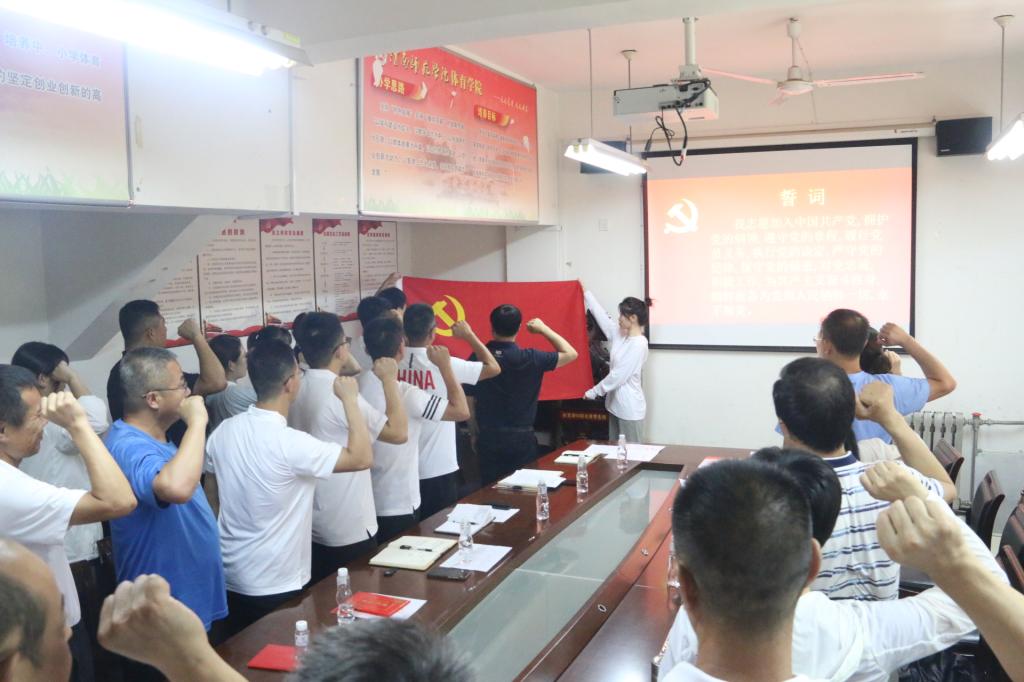“重温入党誓词”环节,全体党员面对党旗,高举右手,在领誓人田耿辉的带领下庄严宣誓:“我志愿加入中国共产党,拥护党的纲领……”鲜红的党旗、响亮的誓言,辉映着忠诚,彰显着责任,坚定了党员师生永远跟党走的忠诚信念。