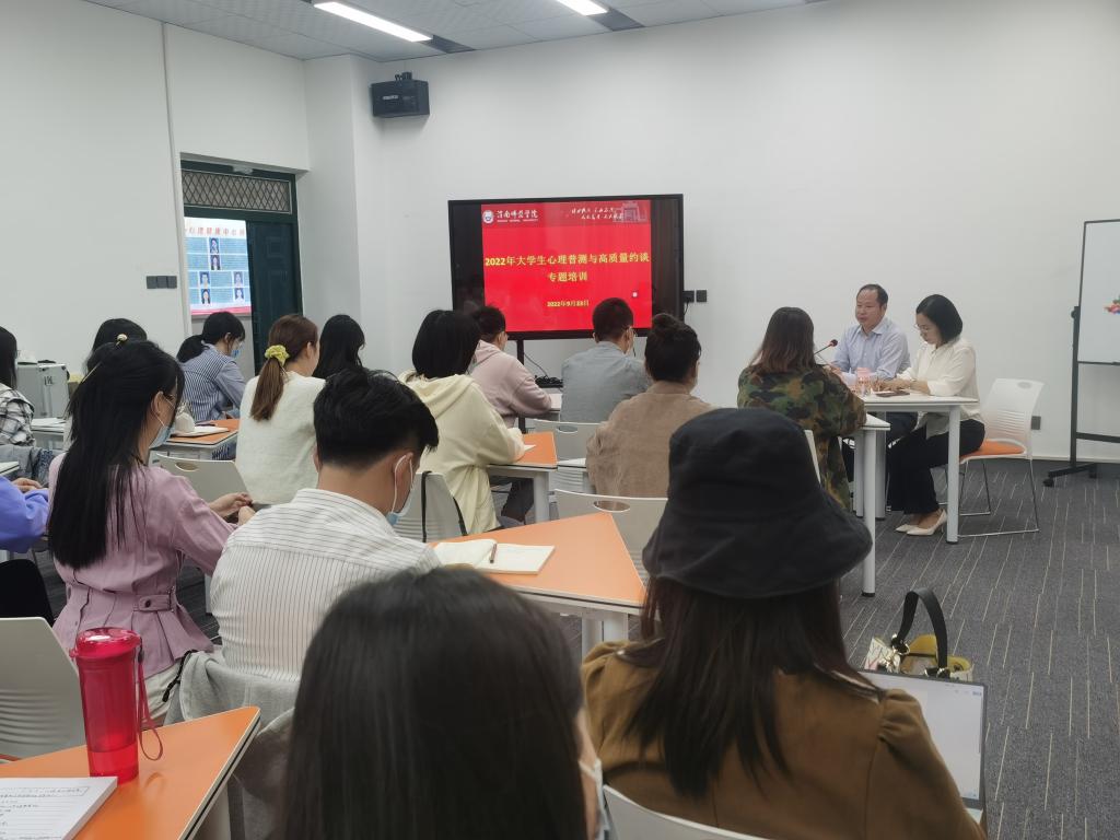 9月23日,我校大学生心理健康教育指导中心举办2022年大学生心理普查与高质量约谈专题研讨培训。此次培训由心理中心主任刘原主持,共计三十余名心理专干和新生辅导员参加,党委副书记汪勇出席并讲话。