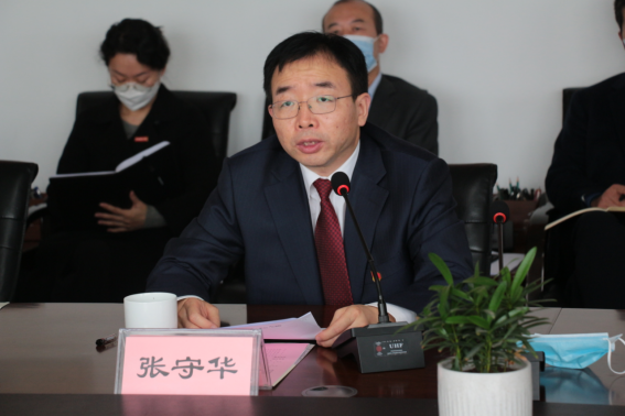 王海波代表陕西省教育厅讲话。他对各位专家的高度负责精神和严谨求实态度表示由衷的钦佩,对线上认证期间的辛勤工作和悉心指导表示衷心的感谢,对我校上下联动、认真做好各项认证准备及配合工作表示充分肯定。他表示,专家组线上考查的意见建议专业到位,既是解决现有问题的宝贵药方,又是推进今后工作的目标方向。他指出,此次师范类专业认证,对数统学院加强数学与应用数学专业的内涵建设、持续发展,对学校所有师范类专业建设的改革、师范生培养质量的提升,都具有重要的指导意义。希望学校要以此次认证为契机,坚持以“学生为中心、产出导向、持续改进”的认证理念,坚持“一践行、三学会”的师范生培养核心,对专家组提出的反馈意见逐条认真梳理,严格对标,加大整改。他要求,一是高度重视,认真领会消化专家反馈意见;二是聚焦内涵发展,切实做好持续改进工作;三是深化改革,着力提高人才培养质量。全校上下要以评促建、以评促改、以评促强,坚守师范教育初心,强化师范特色,精准培养策略,争做陕西师范教育发展的忠实践行者,争做师范教育的率先垂范者,争做新时代后备教师队伍建设的坚定守望者。