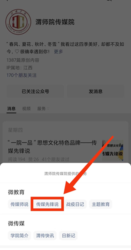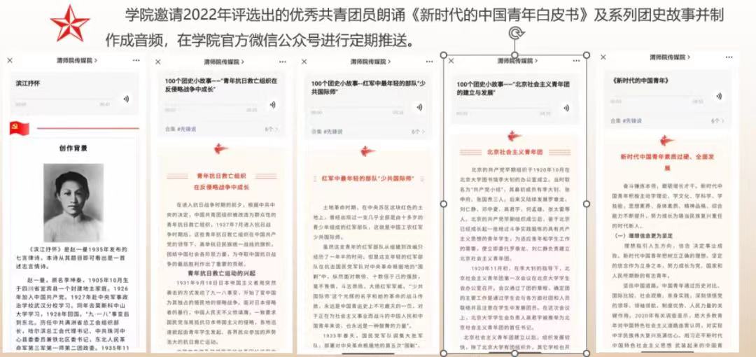 “传媒先锋说”栏目创设于2021年初,是学院发挥特色专业优势,利用新媒体平台,用好网络育人手段,用碎片化、互动化、交互性的方式引导青年学生学习,用新型传播手段创新网络思想政治教育。“传媒先锋说”栏目引导青年学生系统学习党史、团史,学习身边的先进典型和榜样人物,将理想信念内化于心、外化于行,指引青年学生为实现中华民族伟大复兴的中国梦而努力奋斗。学院邀请学校抗美援朝老兵、退休老教师、老党员——付自善讲述革命故事,现场展示老英雄荣获的军功证书和革命纪念章,激励广大师生在奋发有为中践行初心使命;学院组织教职工和学生党员参观学习学校“两联一包”扶贫点大荔县龙门村,与8年坚守脱贫攻坚一线、第一驻村书记、陕西省“优秀共产党员”获得者——赵琦座谈交流,致敬身边的典型榜样;栏目的“抗‘疫’作品展”更是极大地鼓舞了师生的士气,教师线上授课异彩纷呈,师生的战“疫”日记、抗“疫”作品展更是百花齐放,思想教育与专业建设并行,爱国主义教育情感渗透在作品的字里行间。截止目前,“传媒先锋说”栏目已推送宣传内容44期。