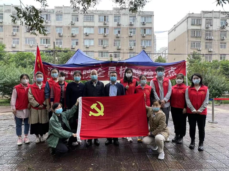 2022年传媒学院教工党员作为抗“疫”志愿者服务学校核酸检测