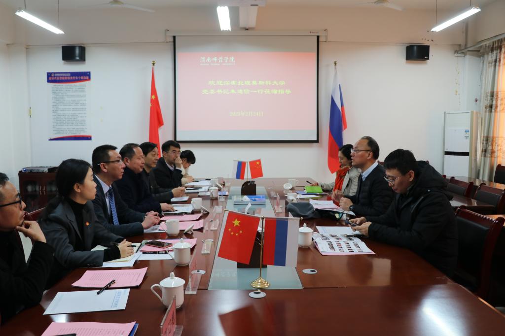 2月24日下午,深圳北理莫斯科大学党委书记、副校长朱迪俭,附属幼儿园园长孙云霞,条件保障部副部长刘永明一行莅临我校调研交流,深入了解我校莫斯科艺术学院建设及人才培养情况。我校党委书记卓宇、副书记汪勇、副校长王菊霞会见朱迪俭一行。