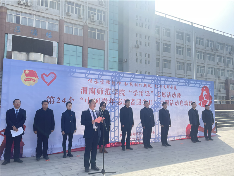 汪勇讲话并宣布主题活动启动。他指出,我们要以本次活动为契机,进一步深化向雷锋精神学习系列活动,广泛开展社会志愿服务活动,积极投入到渭南市创建全国文明城市创建和省级文明校园创建工作之中,充分发挥青年学生在学雷锋活动中的生力军作用。全体渭师青年行动起来,用自己的实际行动践行雷锋精神,让学雷锋活动在广大渭师青年中蔚然成风,让雷锋精神代代相传、发扬光大。
