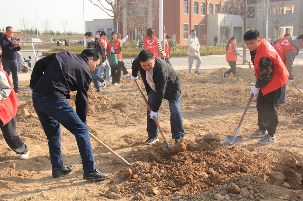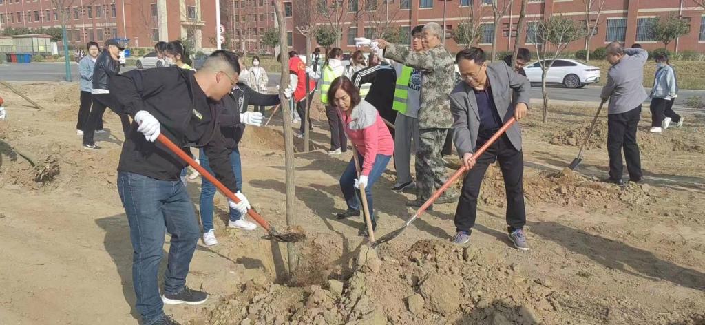 据悉,在富平县委、县政府的大力支持下,2023年春季我校将在富平校区种植樱花、银杏、红叶李、国槐等2500余株,绿化土地100亩。后续,学校各二级单位也将陆续参与到此次活动中来。