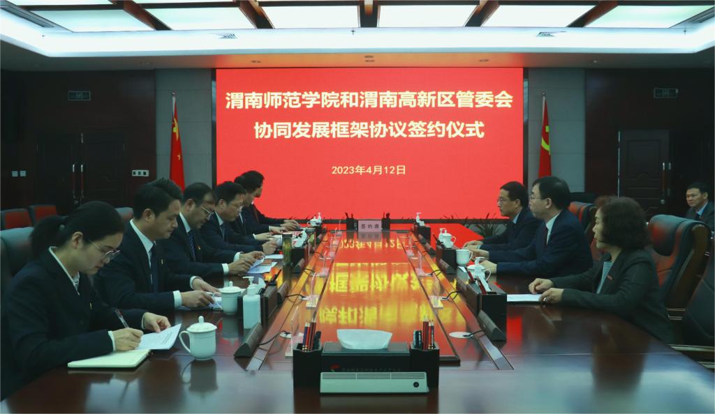 4月12日,我校与渭南高新区管委会协同发展框架协议签约仪式在渭南高新区举行。渭南市委常委、市委组织部部长,高新区党工委书记高振鑫,高新区党工委副书记、党群工作部部长党锋,高新区党工委委员、管委会副主任樊波,我校校长张守华,副校长王菊霞、曹强出席签约仪式。签约仪式由高新区党工委副书记、党群工作部部长党锋主持。