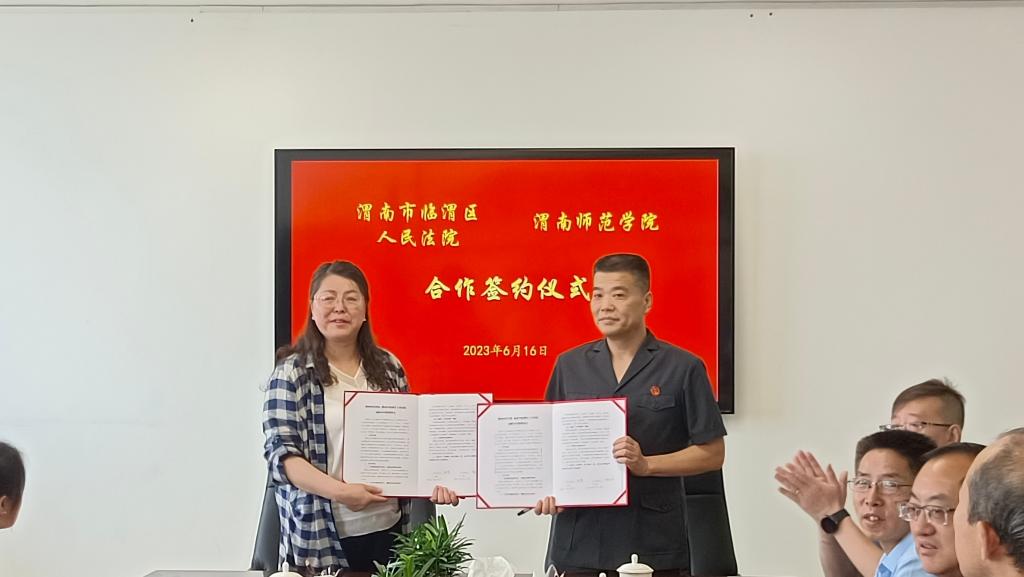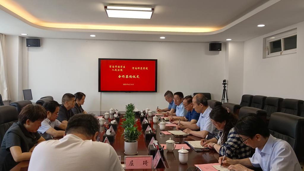 6月16日上午,我校马克思主义学院与渭南市临渭区人民法院战略合作框架协议签约仪式在厚德楼第一会议室举行。临渭区人民法院党组书记、院长张东亮,党组成员、副院长陈福红,刑庭庭长田渭芳,审判管理办公室负责人田青,我校党委副书记袁亮、教务处处长孙宏恩出席仪式。签约仪式由马克思主义学院党总支书记赵国峰主持。