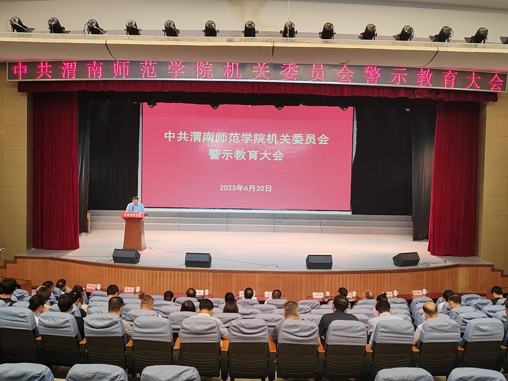 6月20日下午,机关党委召开警示教育大会。机关党委科级以上(含)干部参加大会,校党委书记卓宇,党委副书记、纪委书记、省监委驻校监察专员肖耀刚,党委副书记韩小卫、袁亮,党委委员、副校长卢爱刚,党委委员、宣传部部长李明敏等以普通党员身份参加。大会由机关党委书记董康军主持。
