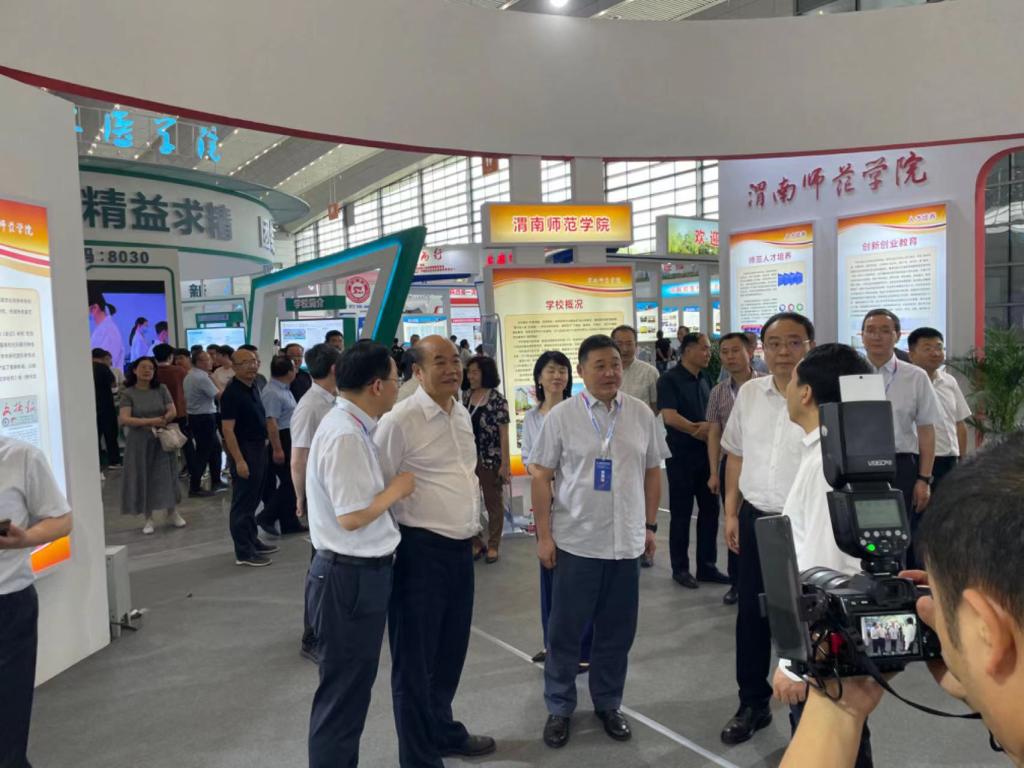 陕西省委教育工委书记刘建林、陕西省教育厅厅长王树声等领导莅临我校展区指导,学校党委书记卓宇、校长张守华、副校长王菊霞介绍参展情况。