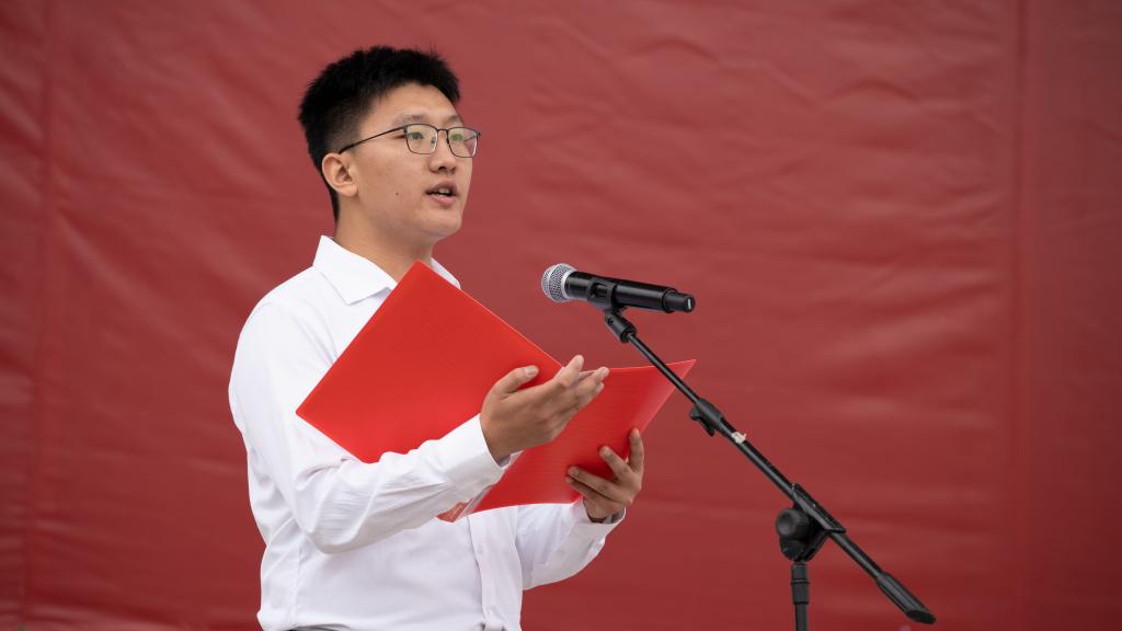 人文学院2021级汉语言文学专业学生刘宇立作为在校生代表发言,寄语全体新同学“为者常成,行者常至”,结合自身学习、参赛等大学学习生活体会,鼓励新同学积极参加各类学生组织、课外活动和学科竞赛,珍惜大学时光,大胆实践,砥砺前行。