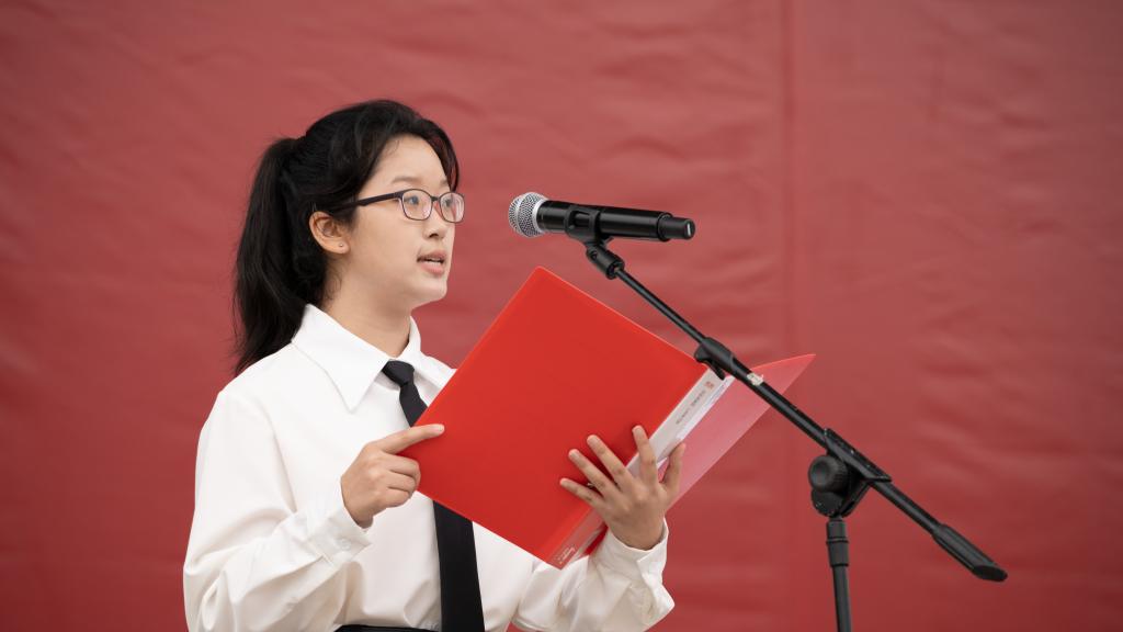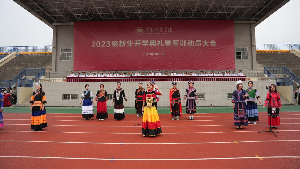 教育科学学院2023级学前教育专业学生刘佳怡作为新生代表发言,表示将自信奋进,传承师道,潜心向学,不畏困难,厚植爱国情怀,涵养高尚师德,强化教育智慧,历练坚韧品格,以奋斗的姿态踏上新征程,为社会发展和国家强盛贡献青春力量。