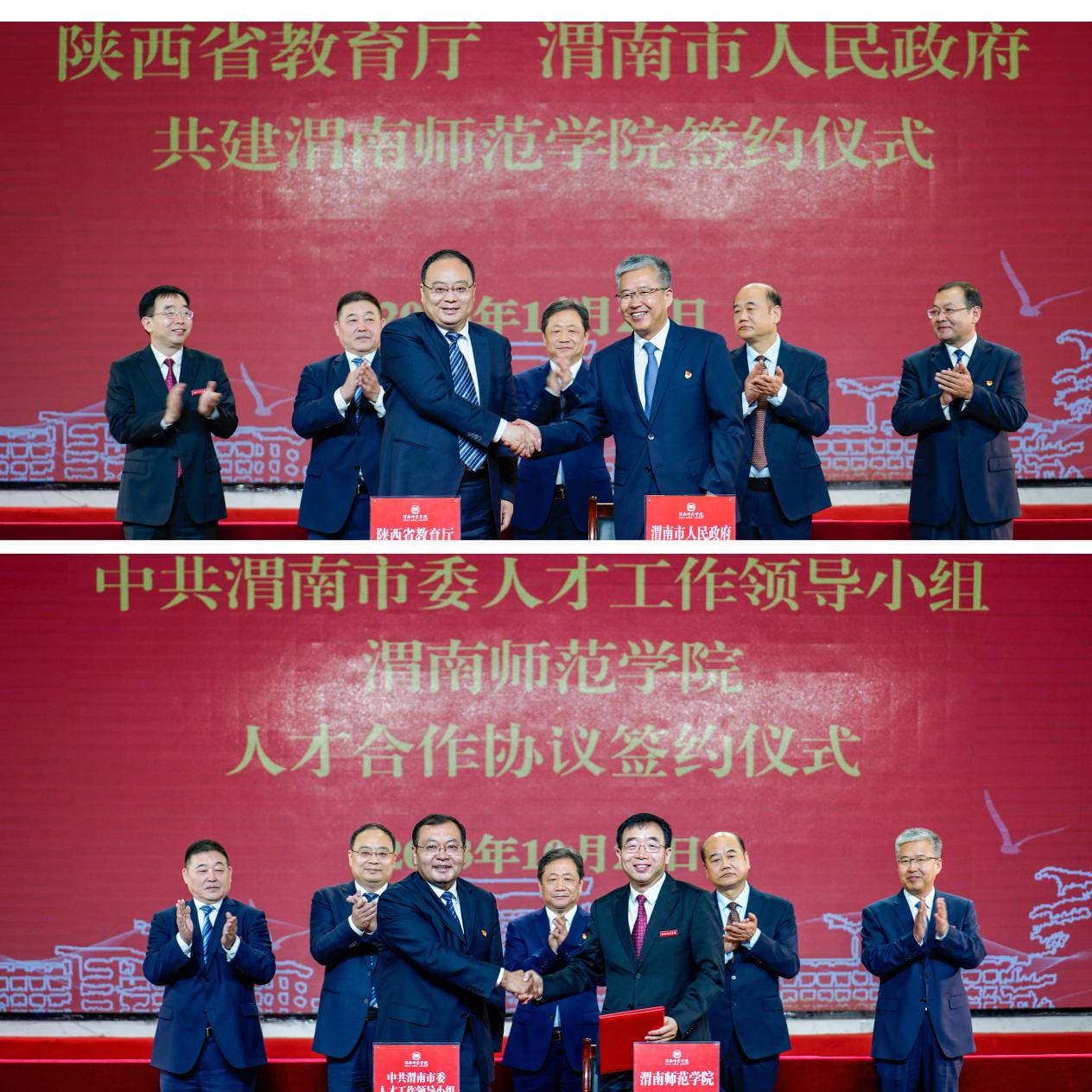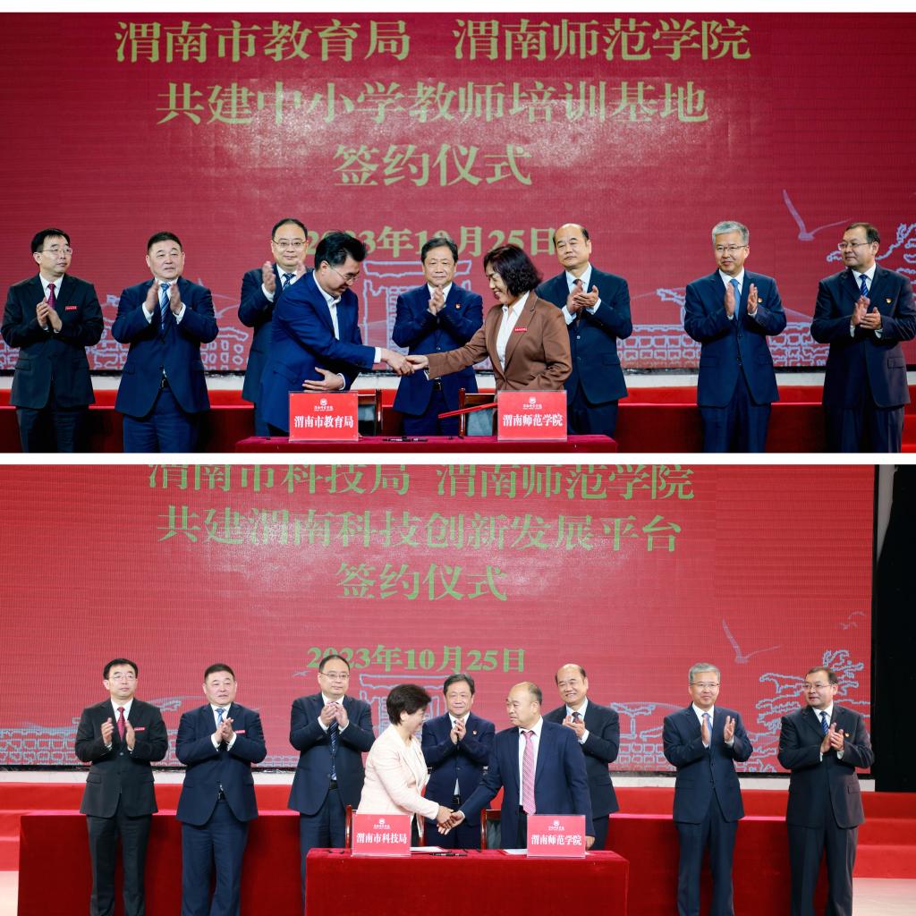 10月25日上午,陕西省教育厅与渭南市人民政府共建欧宝娱乐官方app签约仪式举行。市委书记樊维斌,省委教育工委书记刘建林出席并讲话。省教育厅厅长王树声、市长陈晓勇现场签订协议书。渭南市委常委、市委组织部部长,市政府副市长、党组副书记、渭南高新技术产业开发区党工委书记高振鑫,欧宝娱乐官方app党委书记卓宇、校长张守华参加活动。副市长刘宝琳主持签约仪式。