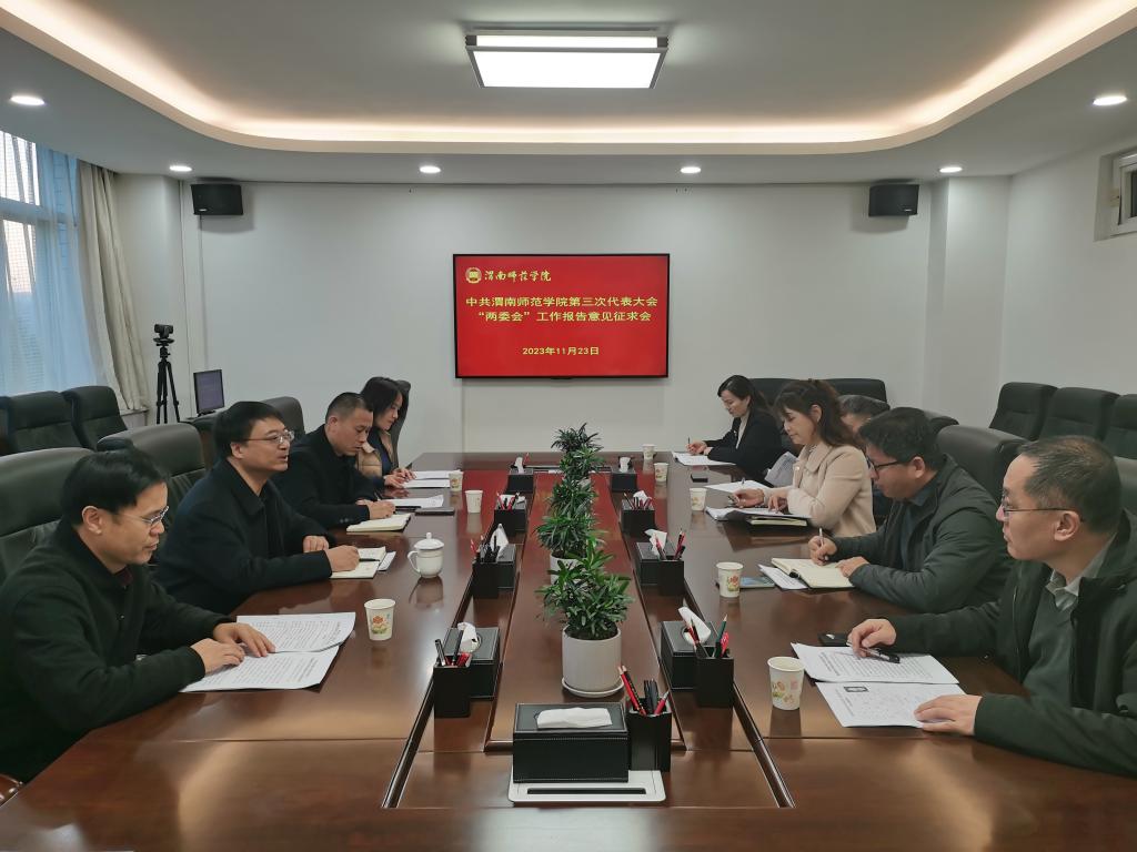 为充分发扬民主,汇集各方智慧,广泛凝聚共识,根据学校第三次党代会筹备工作领导小组的安排,学校分别以讨论会、座谈会、书面等形式,广泛征求各方对党代会“两委”工作报告的意见建议。“两委”工作报告先后征求了学校领导、各职能处室、二级学院、离退休教职工、民主党派、无党派人士等意见建议。
