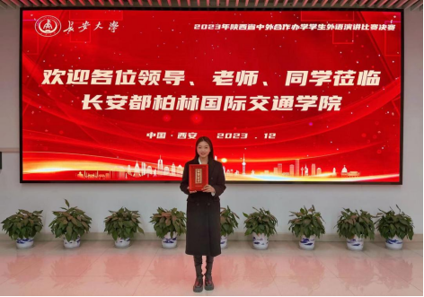12月7日,由陕西省教育厅主办、陕西省高等教育学会中外合作办学分会、长安大学长安都柏林国际交通学院和长安大学外国语学院承办的“2023年陕西省中外合作办学学生外语演讲比赛决赛暨颁奖仪式”在长安大学举行。来自全省19所高校的优秀学子参加本次大赛,我校莫斯科艺术学院2021级音乐学专业黄于萱同学喜获三等奖,钟嘉乐获优胜奖。