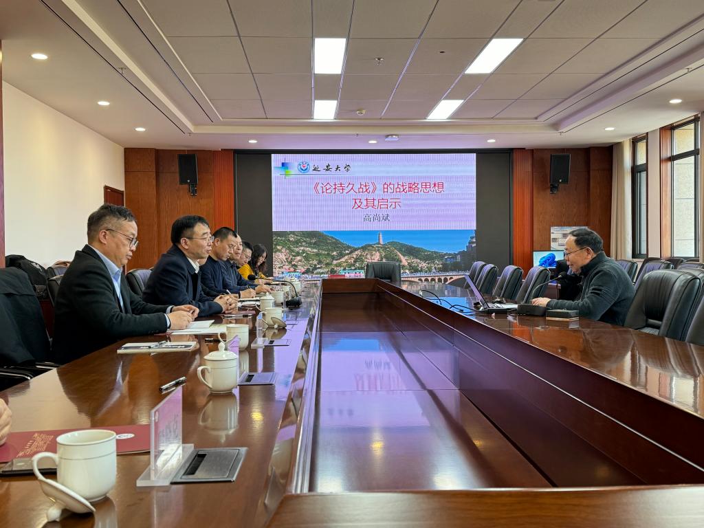 签约仪式后,延安大学高尚斌教授作了题为《<论持久战>的战略思想及其启示》的专题党课,进一步加深了领导干部对坚定理想信念、发扬斗争精神的理解,提升了党性修养,激发了斗争精神,更加坚定了攻坚克难、奋力推动我校高质量发展的信心和决心。