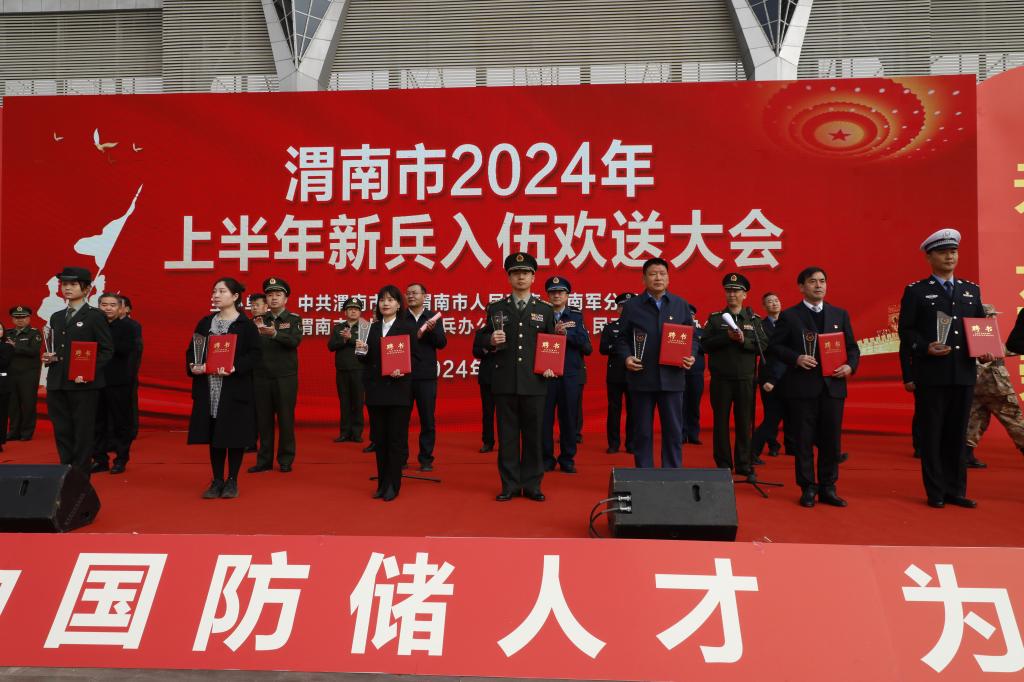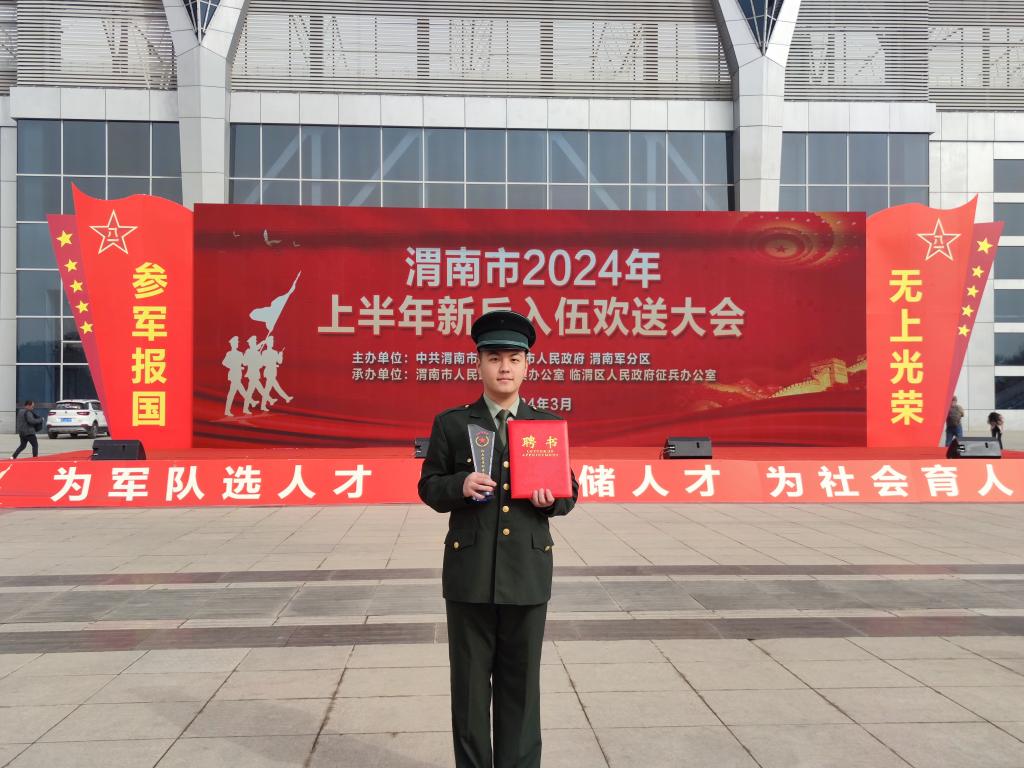 近日,渭南市2024上半年新兵入伍欢送大会上我校退伍大学生郑子馨、李昱霖被聘为渭南市“征兵形象宣传大使”。