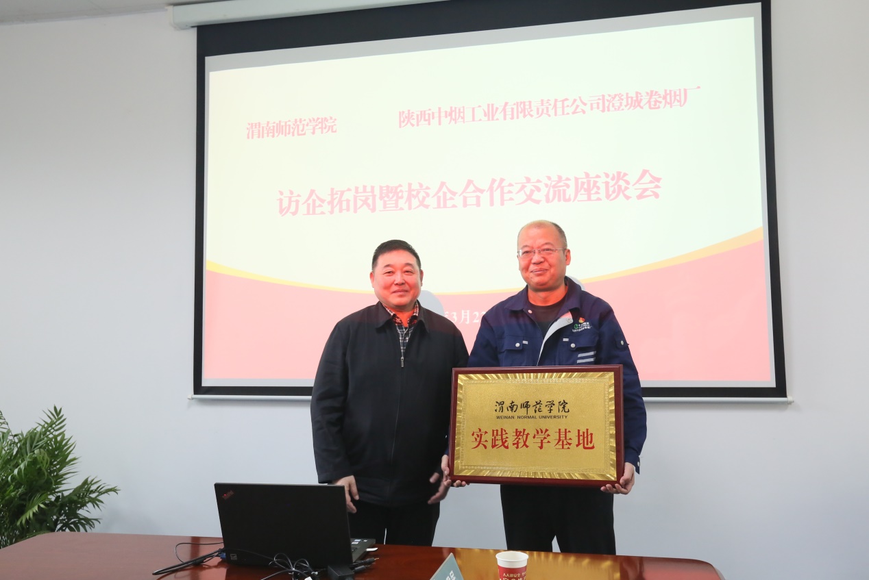 座谈会上,汪勇介绍了我校基本情况和此次访企拓岗的目的。卢爱刚强调,通过加强课题申报、开展培训、加强实践教学等活动,推进双方的融合发展。随后,卓宇授予陕西中烟澄城卷烟厂“欧宝娱乐官方app实践教学基地”牌匾。