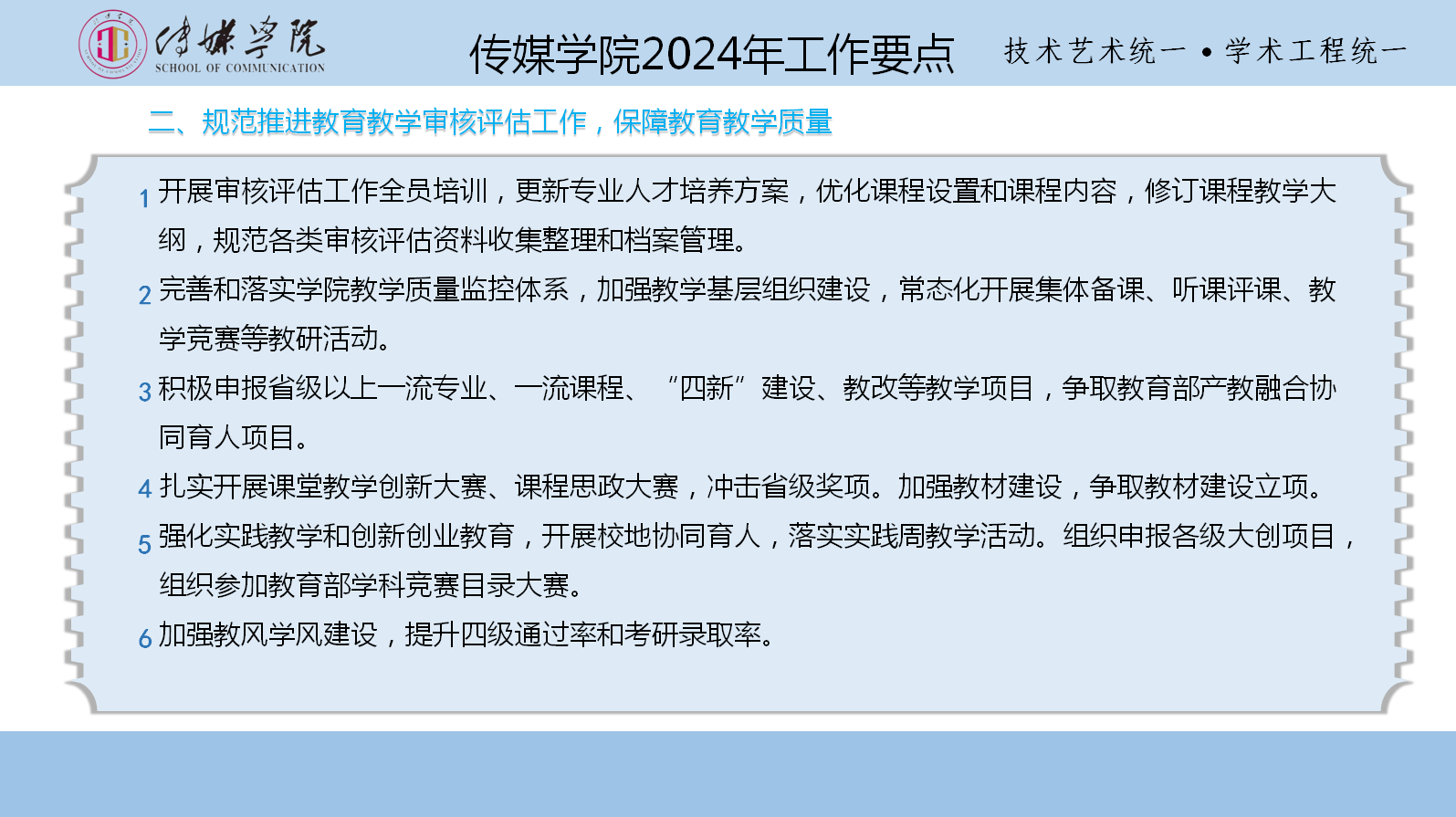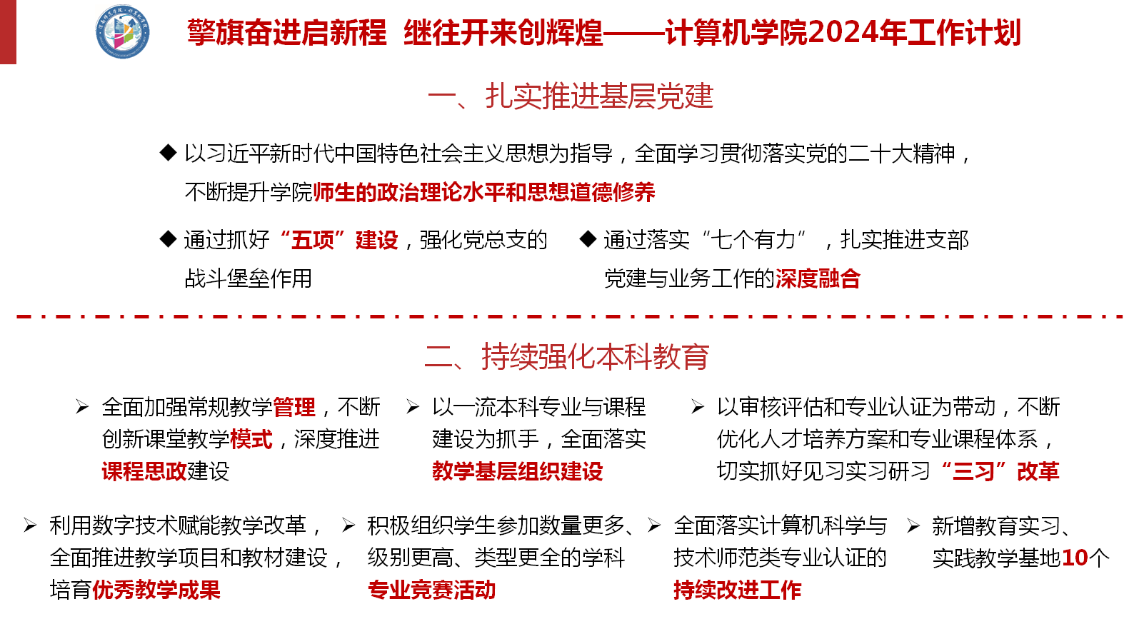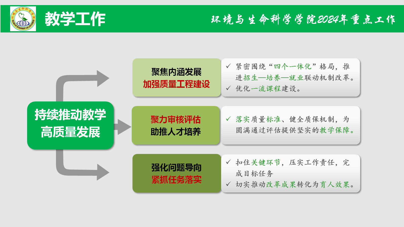 浩荡春风起,奋进脚步疾。为进一步明确工作目标、理清工作思路,营造干事创业的浓厚氛围,激发推动高质量发展的强劲动力,特推出“锚定目标笃行实干 聚力向前共谱新篇”系列报道,集中“晾晒”各二级单位2024年重点工作任务清单,“晒”出比学赶超的新方向,“晒”出实干担当的好作风,形成一项一项抓落实、稳扎稳打干实事的生动实践,以奋斗的姿态合力描绘学校事业高质量发展的崭新图景。