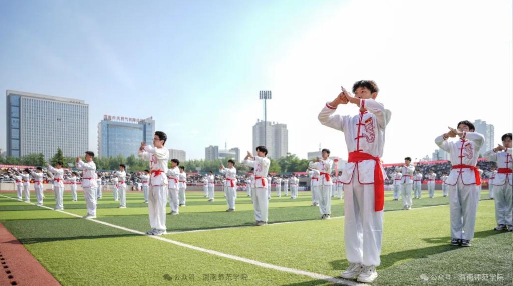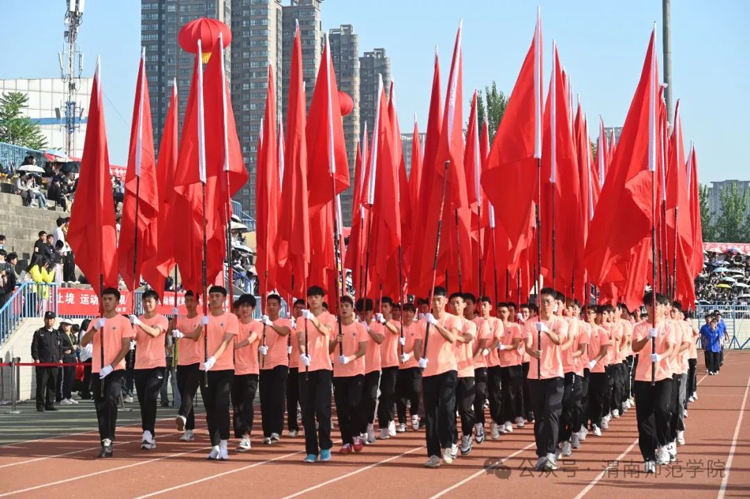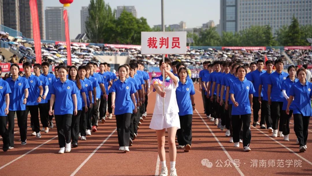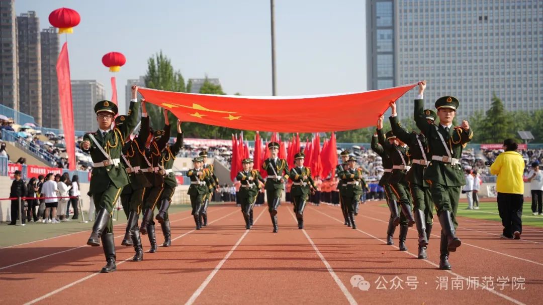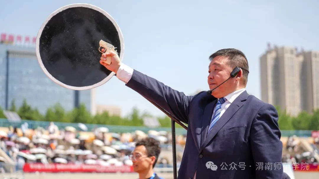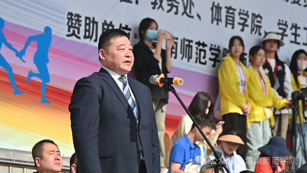 学校党委书记卓宇宣布2024年体育文化节暨春季田径运动会开幕。副校长常青林致开幕辞,他指出,学校举办体育文化节暨春季田径运动会是深入贯彻党的二十大精神,广泛开展全民健身活动,加强青少年体育工作,加快建设体育强国的重要举措。学校始终坚持以习近平新时代中国特色社会主义思想为指导,坚持社会主义办学方向,坚持立德树人根本任务,认真落实中办、国办《关于全面加强和改进新时代学校体育工作的意见》,高度重视体育工作,不断加大体育设施和教学投入力度,大力改善体育运动条件,运动场所向师生全面开放。聚焦“教会、勤练、常赛”,推进体育俱乐部制改革,创新体育选项课模式,加强大学生运动队训练,丰富教职工体育文化活动,开展阳光体育运动,师生在各类体育赛事中的良好表现和喜人成绩。他强调,田径运动会既是对我校体育素质、教育教学水平的一次综合检阅,更是激发全体师生热情与干劲,凝聚发展合力,增添发展动力的良好契机。他希望师生秉承奥林匹克理念,弘扬中华体育精神,在体育运动中展示激情、彰显活力,感受体育精神带来的震撼和体育运动带来的快乐,大展“文明、团结、进取、超越”的“渭师”风采!