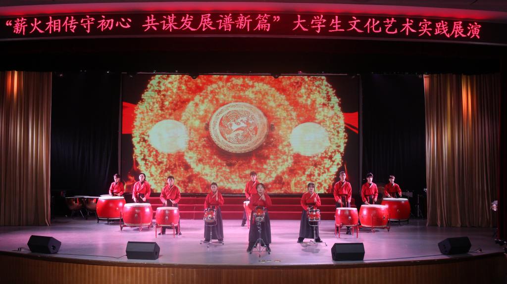 展演在打击乐《鼓动中国》中拉开帷幕,共分上下两个篇章。来自音乐学院、莫斯科艺术学院、体育学院、外国语学院的13个节目,主题鲜明、催人奋进。展演以悠扬的器乐、婉转的唱腔、灵动的歌舞、深情的诵读、精彩的武术等丰富多彩的艺术形式,展现了渭师青年与时代同向、与祖国同行,胸怀家国、奋力逐梦的价值追求,展示了渭师学子朝气蓬勃、自信昂扬、奋发进取的精神风貌,进一步展示出我校六十四载立德树人守初心,深耕教育践使命的坚守,生动地呈现了我校寓思政教育于文化活动之中,不断加强校园文化品牌建设,打造富有渭师范特色的全覆盖、高质量美育体系取得的实效。