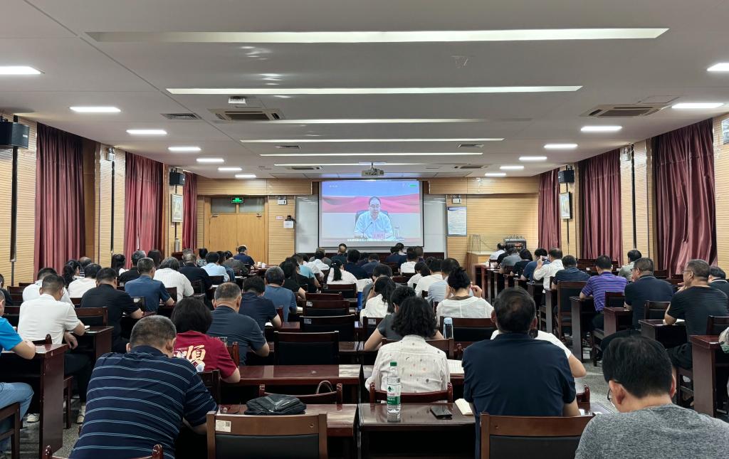 我校党委委员、各二级单位党政负责人、各二级学院党总支副书记和马克思主义学院教师在逸夫楼科学讲堂,通过视频会议的形式认真聆听学习。