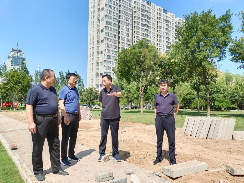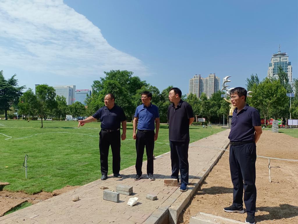 8月28日下午,校长张守华在党委副书记常青林陪同下到学校1、2号教学楼北侧检查指导绿化改造提升项目施工情况。