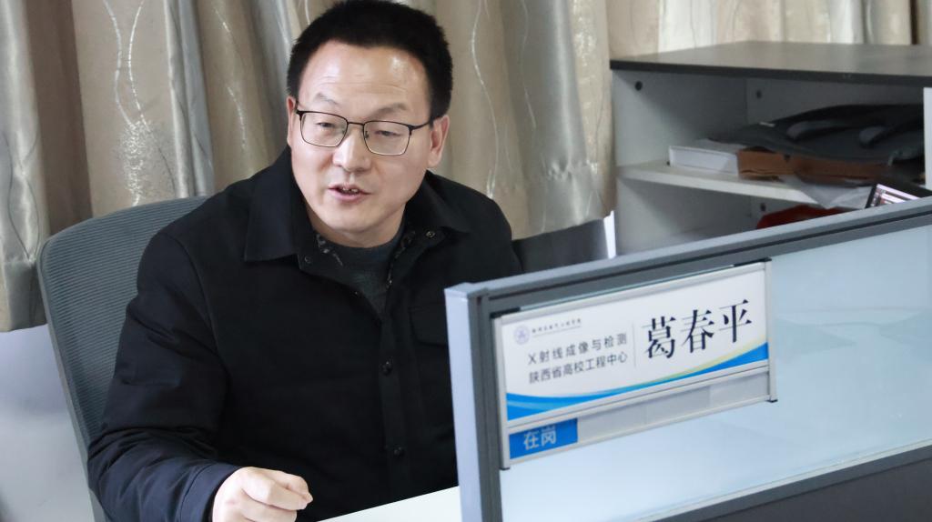 在学校实验楼的办公室内,我校物理与电气工程学院教师、X射线成像与检测陕西省高校工程研究中心核心成员葛春平副教授正在展示他的团队是如何通过自动判断工业CT重建图像质量对CT设备几何参数进行修正的。