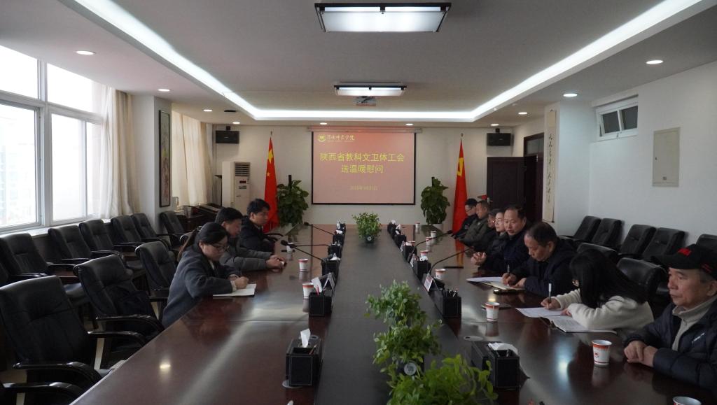 1月21日上午,省教科文卫体工会主席徐富权、二级主任科员钟振宇、三级主任科员赵元琛一行莅临我校,开展春节送温暖慰问活动。我校党委副书记汪勇、工会、保卫处及困难教职工参加座谈会。