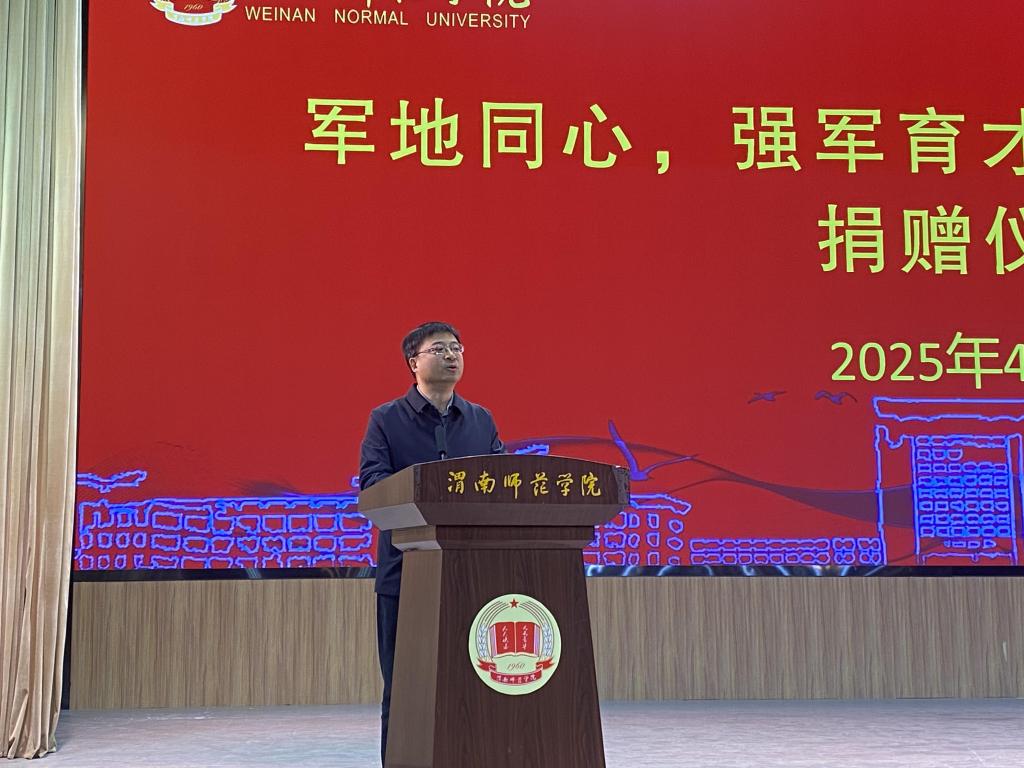 仪式上,学校党委书记、校长张守华发表致辞。他指出,渭南军分区捐赠服装、书籍、军训器械等国防教育物资,承载着军队对青年学子的殷切期望与国防责任担当,有力推动学校国防教育建设,是军地协同培育强军人才的生动实践。张守华代表学校向渭南军分区及社会各界的关心支持致以衷心感谢,表示将在全体师生的共同努力下,将国防教育融入人才培养全过程,持续深化铸魂育人工程,培养更多兼具家国情怀与过硬本领的时代新人。