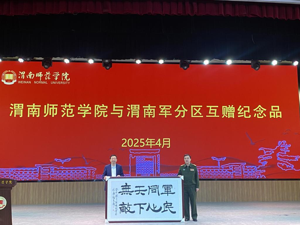 4月11日,“军地同心 强军育才”国防教育物资捐赠仪式在学校演艺厅举行。渭南市委常委、渭南军分区大校政治委员何勇进,欧宝娱乐官方app党委书记、校长张守华出席捐赠仪式。捐赠仪式由学校党委副书记常青林主持,在渭南军分区代表、渭南各市区县武装部部长、中小学校长代表、学校师生代表共同见证下举行。
