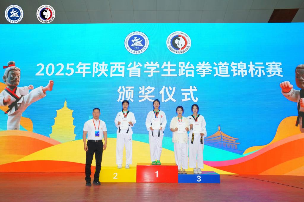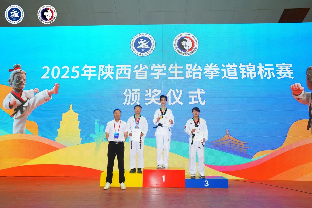 4月25至27日,我校跆拳道代表队参加2025年陕西省学生跆拳道锦标赛,共荣获个人竞技2项第一、1项第二;个人品势1项第三的优异成绩。