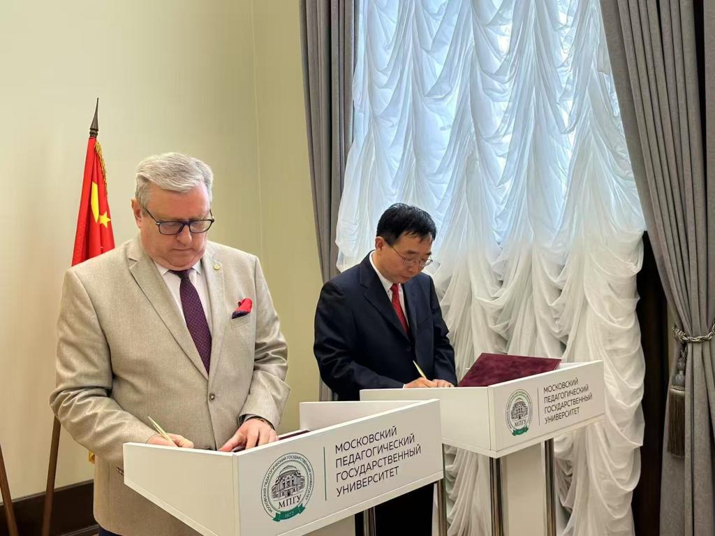 张守华一行与卢布科夫进行了亲切会谈,双方商定莫斯科艺术学院2027至2031年的合作办学事项,并现场签订了合作备忘录。两校就共同开展本科“3+1”和硕士“1+1”等形式的联合培养项目、联合举办暑期学校、进一步加强两校师生之间的交流与合作,扩大两校教师互派数量等问题达成共识。