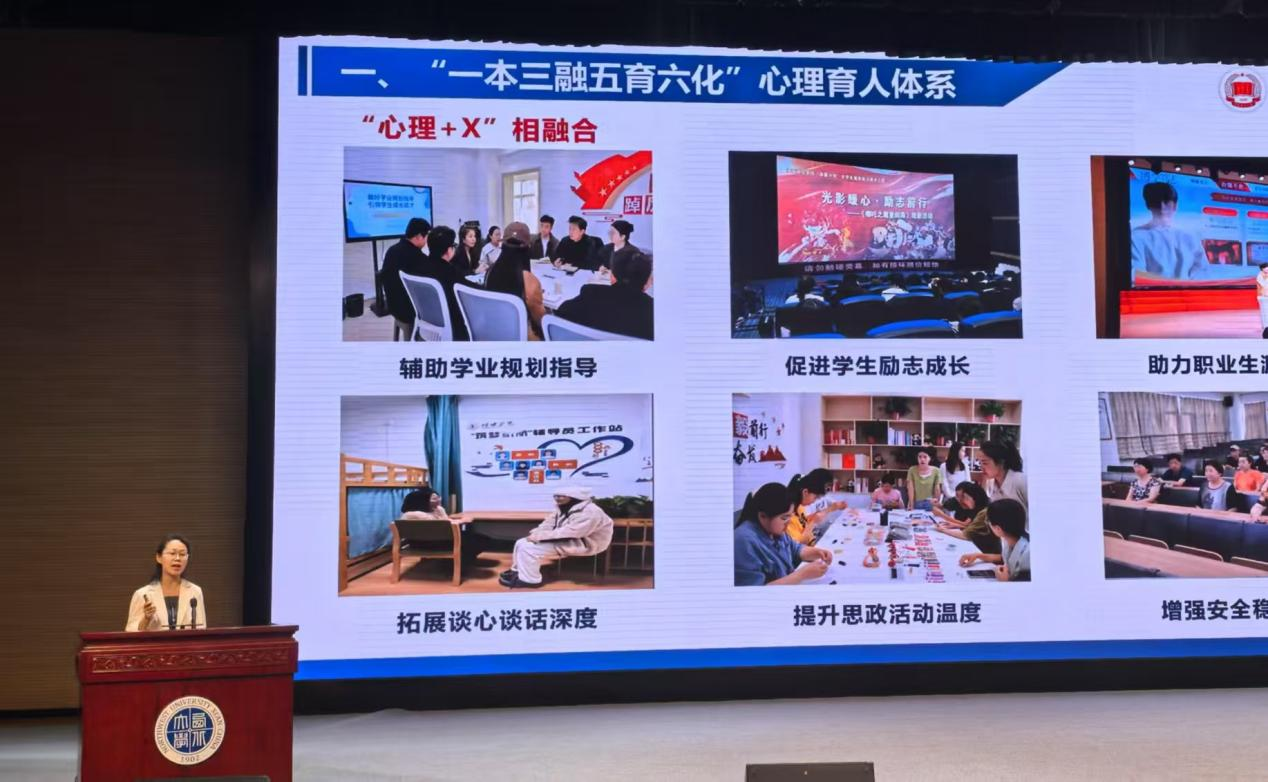 学生工作部部长田耿辉代表学校交流发言,全方位展示我校独具特色的心理育人模式。近年来,学校始终以“天天奋斗 天天快乐”的精神为引领,深耕心理健康教育领域,精心构建起“一本三融五育六化”心理育人体系,积极探索“知建联融塑”心理赋能模式,全力打造“快乐育心 阳光渭师”特色品牌,在心理育人工作中取得了丰硕成果。