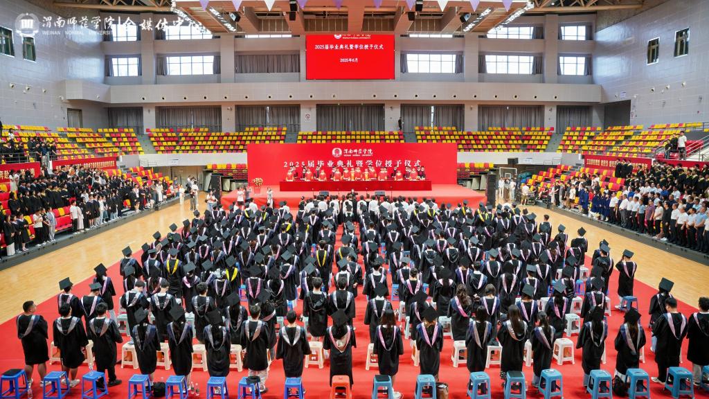 李强代表学校向毕业生们致以热烈的祝贺和衷心的感谢,祝贺同学们顺利完成本科阶段学业,走向人生更广阔的天地。李强勉励所有毕业生,青春不散场,奋斗正当时。他结合2025年陕西高考作文题目“如果有一天,我们能够将梦赠予他人”,向广大毕业生赠送了四个梦:一是传承文化基因、坚定文化自信的“传薪者之梦”,勉励大家发挥专业所长,推动中华文化走向世界,将个人成长汇入文化传承的洪流;二扎根中国大地、服务国计民生的“蒲公英之梦”,希望大家“向下扎根,向上生长”,牢记“至诚报国”的校训精神,把个人理想融入国家发展伟业;三是提灯引路育才、启智润心弘道的“教育家之梦”,在未来的岗位上,坚守教育理想、传承教育情怀、创新教育实践、奉献教育事业,做新时代的传灯人,筑梦人;四是拥抱时代变革、引领创新发展的“弄潮儿之梦”,提醒大家要保持终身学习的态度,善于识变求变,以人文精神为灯塔,以科技思维为引擎,勇立时代潮头,迎接人生挑战。“无论你们走得多远,渭师永远是你们的精神家园”,在祝福同学们前程似锦、梦想成真的同时,他叮咛大家“常回家看看”。