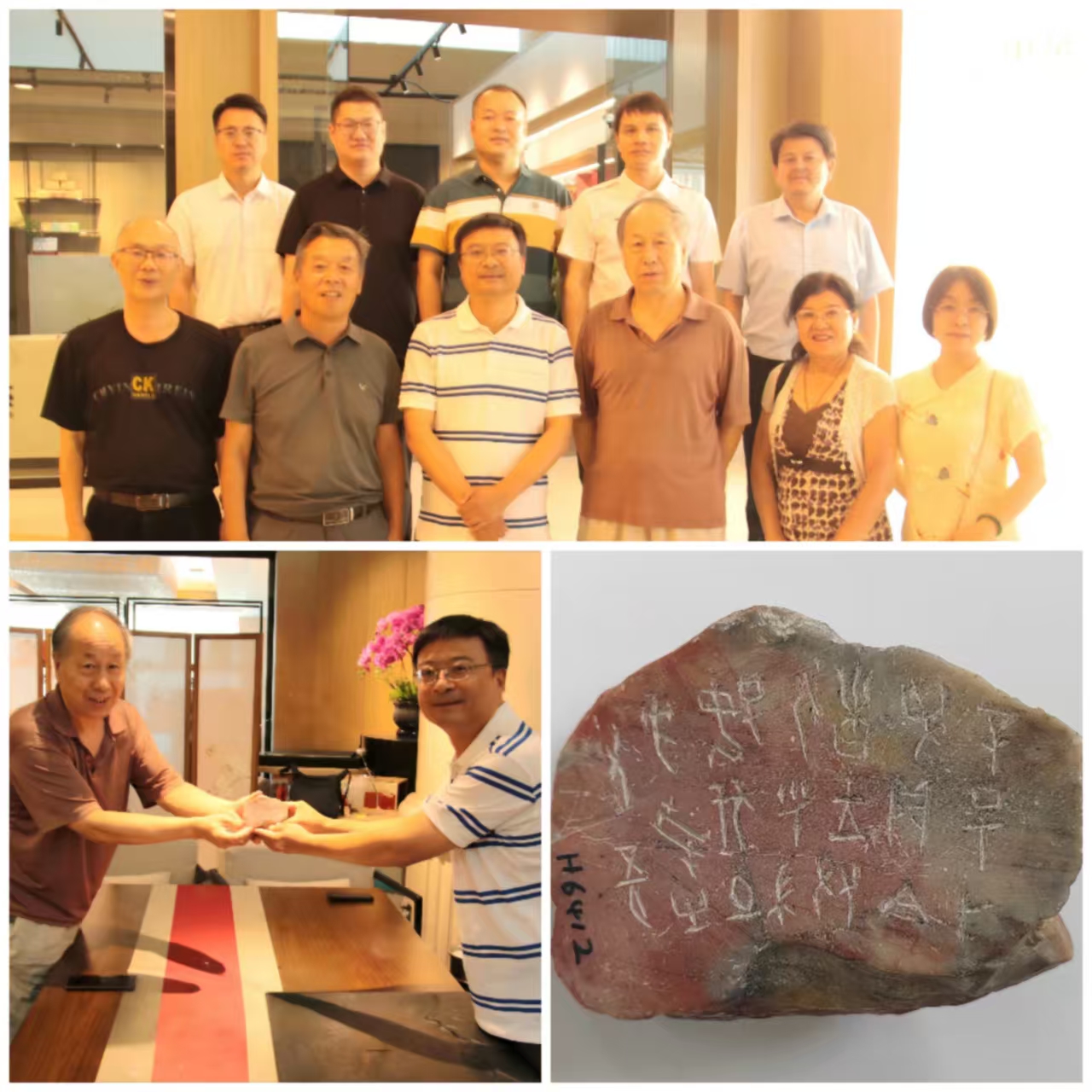 与新疆校友代表交流座谈;1980级校友李明华为母校捐赠刻有甲骨文的寿山三彩芙蓉石