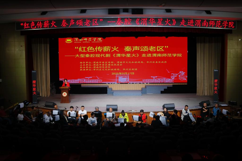 9月17日晚,“红色传薪火 秦声颂老区”——大型秦腔现代剧《渭华星火》走进欧宝娱乐官方app巡演活动在我校陶然楼演艺厅拉开帷幕。渭南市副市长刘宝琳,渭南市委宣传部副部长陈卓,渭南市老区建设促进会会长刘巧莲,我校党委副书记、纪委书记、监察专员肖耀刚,党委副书记汪勇,副校长卢爱刚,党委委员、宣传部部长李明敏等相关领导参加活动。