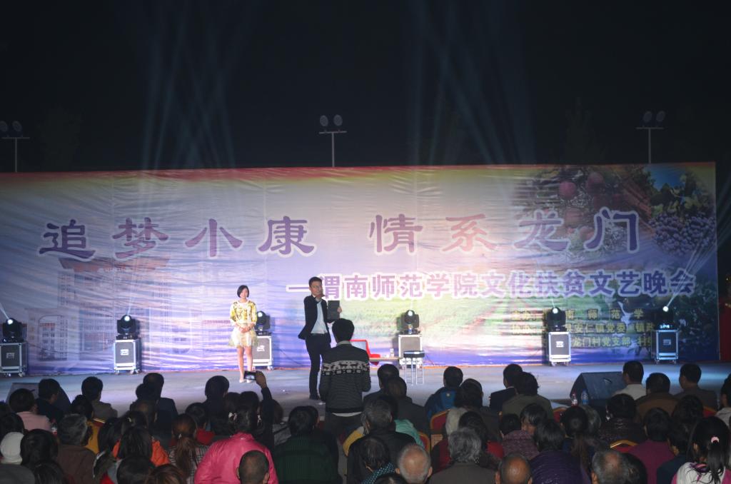 10月24日,我校在扶贫村大荔县安仁镇龙门村举办了“追梦小康,情系龙门”文化扶贫文艺晚会。院长丁德科、纪委书记兼工会主席任健、大荔县扶贫团牵头单位陕西省人民检察院警务处处长孙峰、渭南市扶贫办扶贫科科长宋明、大荔县扶贫办、安仁镇等省市县镇领导和龙门村及周边村群众3000余人观看了这次演出。