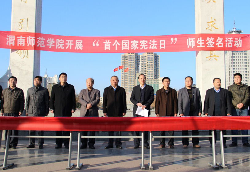 12月4日下午,我校在名人广场渭华门南侧开展“首个国家宪法日”师生签名和系列活动。学校党委书记张金安研究员、党委副书记赵伏友研究员出席活动,学校党政办、宣传部、监察处、学工部、新闻中心、保卫处、法律教育与研究中心、校团委等部门负责人,各二级学院党总支副书记、团总支书记,学校团学组织代表、各学生社团组织代表、各学院学生6000余人。活动由学校党委委员、组织部长杨小渭主持。