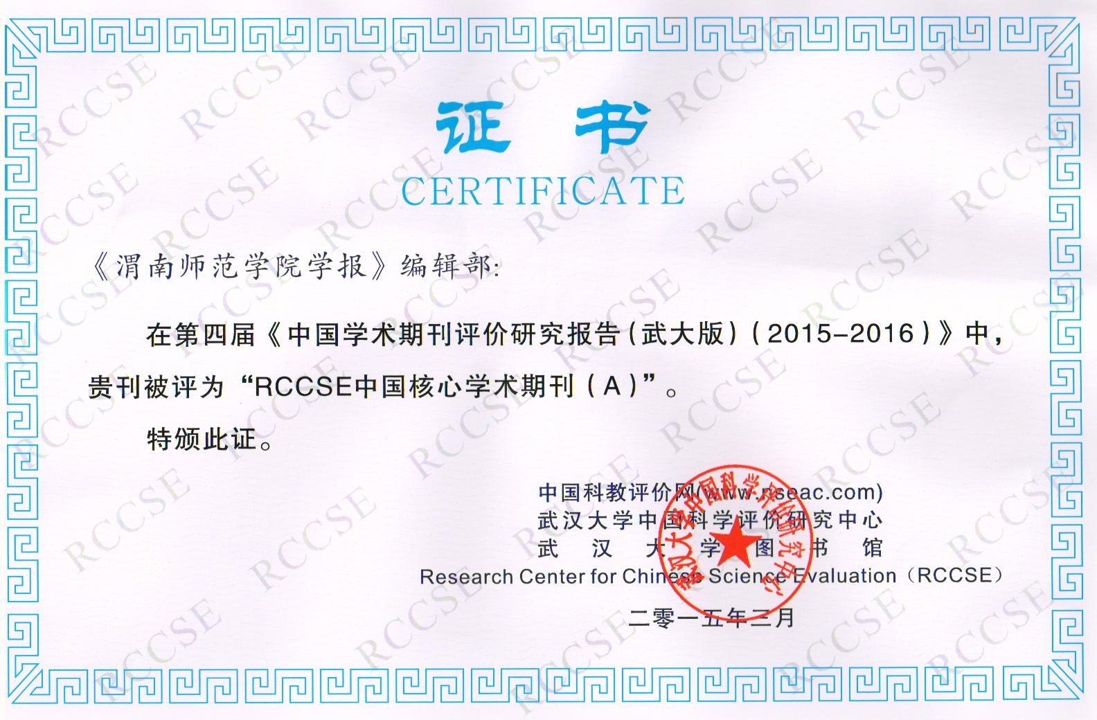 日前,由武汉大学中国科学评价研究中心(RCCSE)、武汉大学图书馆、中国科教评价网共同完成推出的第4版《RCCSE中国学术期刊评价研究报告——权威、核心学术期刊排行榜》公布。《欧宝娱乐官方app学报》在第四届《中国学术期刊评价研究报告(武大版)(2015—2016)》中被评为“RCCSE中国核心学术期刊(A)”,这是《欧宝娱乐官方app学报》首次进入RCCSE中国核心学术期刊(A)名录。