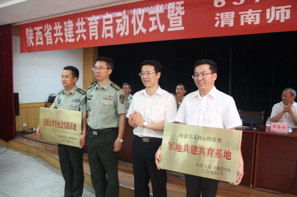 随后,我校团委书记姚明亮与63788部队政治部主任李建辉签署了共建共育协议。我校和63788部队分别被总政治部、团中央授予“社会主义核心价值观军地共建共育基地”“全国大学生社会实践基地”。