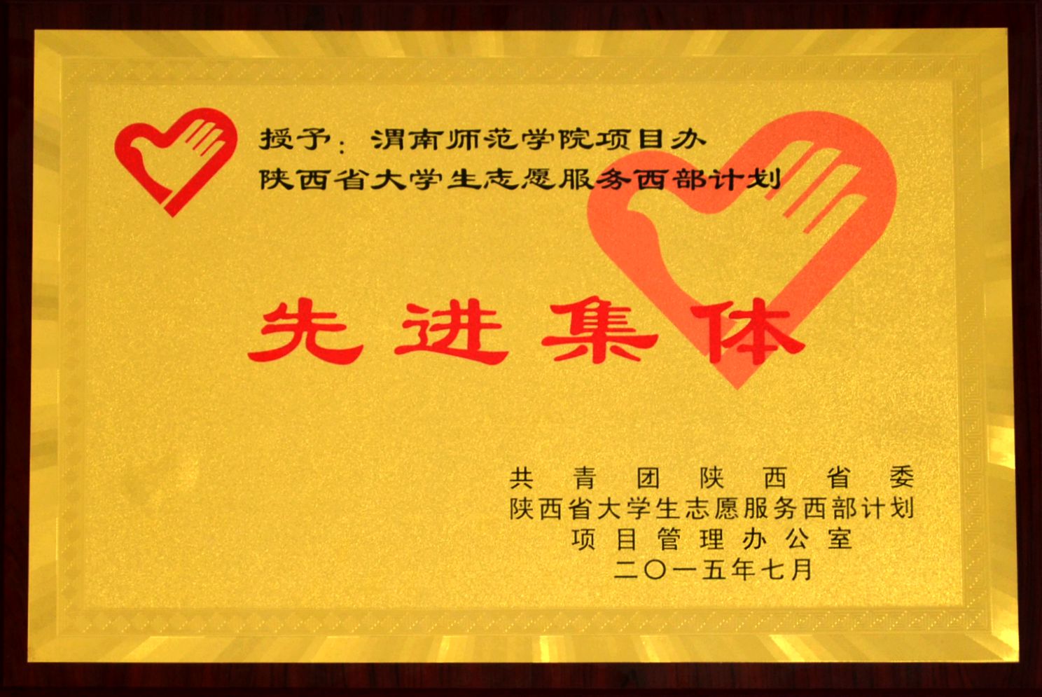 近日,从共青团陕西省委获悉,我校被共青团陕西省委授予“2014—2015年度陕西省大学生志愿服务西部计划先进集体”称号。该奖是我校再一次取得的西部计划荣誉奖,是校团委及大学生志愿者践行西部计划的优秀劳动成果。