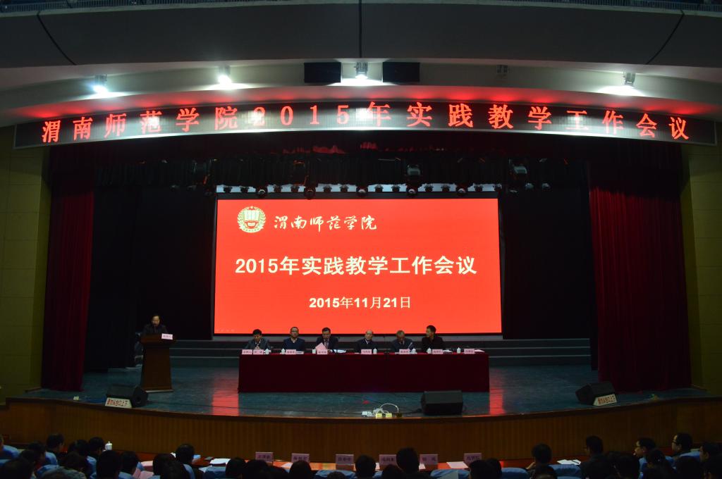 11月21日上午,我校在陶然楼演艺厅召开2015年实践教学工作会议。华中科技大学原副校长冯向东教授,西北师范大学教育学院副院长赵明仁教授,渭南市教育局副局长柴新宏,临渭区教育局局长闵渭安,我校党委书记张金安、纪委书记任健、副院长程书强出席会议,73家校外实践教学基地单位90位代表以及我校相关部门、二级学院领导、系主任、专业建设负责人、教学秘书、实践教学教师代表、学生代表等共350余人参加会议。大会开幕式由纪委书记任健主持。