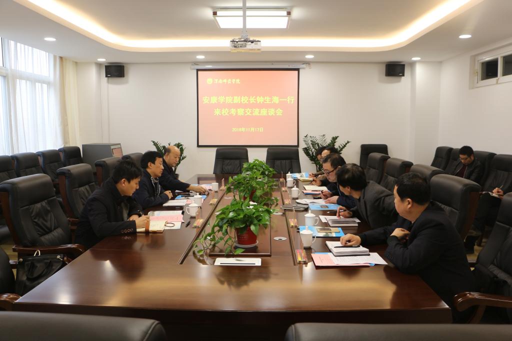 11月17日,安康学院副校长钟生海一行来我校考察交流。交流座谈会在厚德楼四层小会议室召开,会议由副校长程书强主持,相关部门负责人参会。